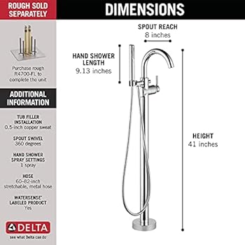 Delta Faucet Trinsic Floor Mount Freestanding Tub Filler With Hand Held Shower Chrome T4759 Fl Valve Not Included Tub And Shower Faucets Amazon Com